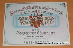 Weinetikett 1961, Bechtheimer Löwenberg, Sammlerwert ca. 7 Euro